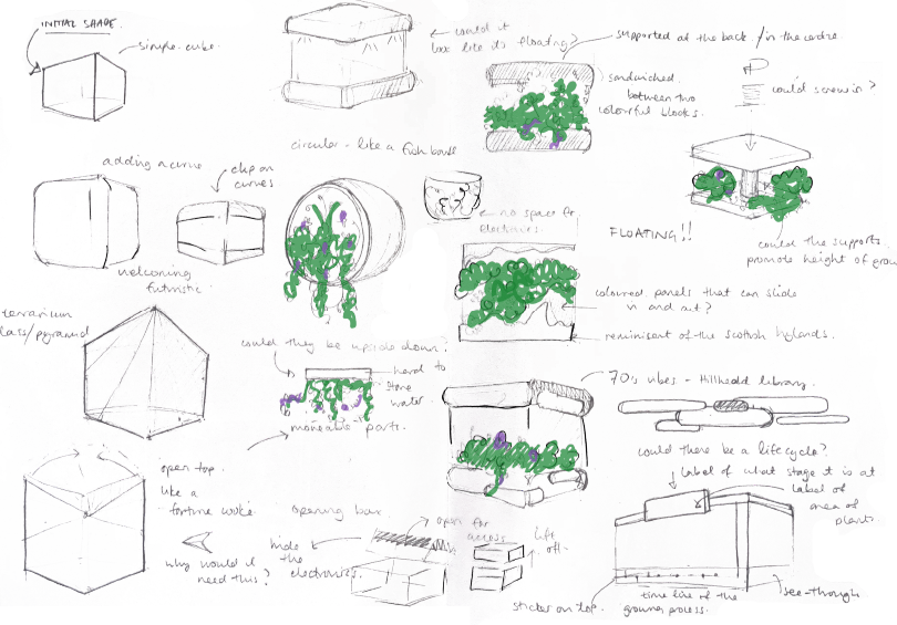 The product is designed to be inclusive to all and for there to be no 'rules' surrounding how and when to interact with it. To remove confusion and hesitation around the final product, it was designed with openness in mind. This included leaving the front open and creating a welcoming frame for the plants.