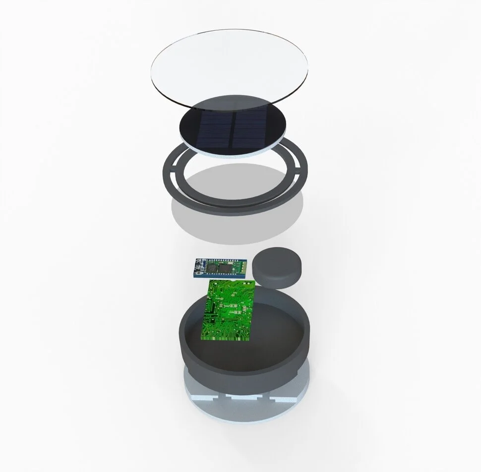 The device is made out of two electronic devices, both (partly and completely) solar-powered, where one is attached to the surfer by a vest, and the smaller component is clicked on the surfboard with a specially designed patch. Besides the communication function, the two parts are connected and measure the distance between the surfer and the board. This connection should improve the survival chances of the surfer in emergencies.